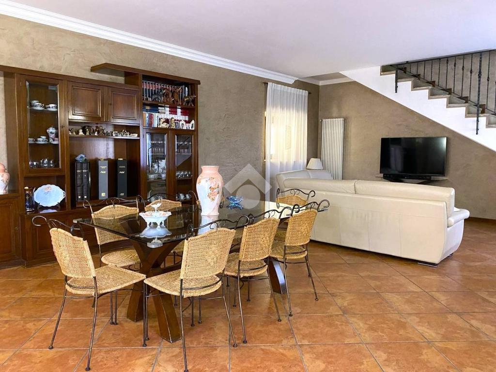 Al piano terra si trovano la cucina, un grande salone di circa 60 mq con camino, un bagno e la lavanderia, oltre al porticato che affaccia sul cortile esclusivo. Al primo piano si sviluppa la zona notte con tre camere da letto, tra cui la matrimoniale dotata di cabina armadio, e un bagno. Sullo stesso piano è presente anche una seconda unità abitativa composta da soggiorno con cucina, disimpegno, camera, bagno e un ampio loggiato di circa 110 mq.
