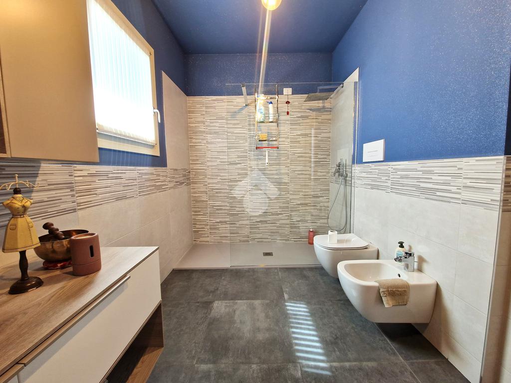 Soluzione impreziosita da doppio split condizionatore caldo/freddo nella zona giorno, oltre che nelle stanze da letto; impianto d'allarme e pannelli solari fotovoltaici con accumulatore con boiler da 296 lt.